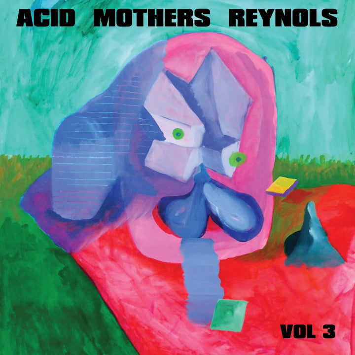 Volume 3 of a set of collaborations between the prolific Argentine polymaths Reynols and the inescapable Acid Mothers Temple. Recorded in Buenos Aires on AMT’s 2017 South American Tour, the music has identifiable sonic elements from both groups but ends up sounding like neither, with a surprising weightlessness that keeps things jammy and psychedelic until the final track’s blustering rock. Taking up most of side 1, “Kicking Air Bricks” has a loose Gong/’70s Euro-classic vibe, with Satoshima Nani getting to swing on the drums in a way that isn’t always part of AMT’s steamroller, while the rest of the gang layers in abstract piano, percussion, glissando guitar, etc. “Multiverse Turtle Reflex” closes the side with a thick drone coda. Side two starts with Miguel Tomasin’s gentle vocal and organ accompaniment on “Smelling Oneiric Asado” before the group gradually gathers momentum with Wolf’s thick bass anchoring layers of clean and loose guitar interplay. “Lemurian Tsunami Inside A Hat” is a thriteen-minute heavy rock epic, with the Reynols’ guitars going head to head with Makota Kawabata’s easily recognized interjections, ramping up into a riffy crescendo.