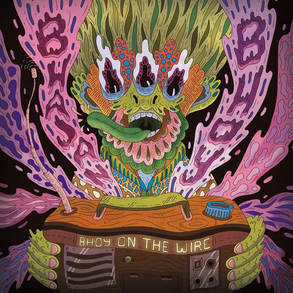 Ajay Saggar is Bhajan Bhoy. This album presents a rich and varied set of compositions that showcase Saggar's skills as an incredibly talented and accomplished composer and musician. With each and every Bhajan Bhoy LP, you are carried to a higher place. With Bhoy On The Wire, the 35 minutes laid out unfolds like a cosmic tapestry, an extraordinary exploration that shimmers and reverberates with newfound vibrancy. The songs were broadcast as part of a session on Steve Barker's On The Wire radio show in April 2024. They were a gift to Steve and his team for 40 years of broadcasting. As Ajay explains in his own words: "In September 1984, I started a degree course at the University of Lancaster. On a wet and soggy Sunday afternoon towards the end of September, I sat in my room staring out at the grey Lancashire landscape, and decided to alleviate the boredom by seeing if there was anything to listen to on the radio. Most of the stations I tuned into were as dull as the weather outside. However, as I neared the end of the FM dial (and was about to give up hope), I chanced upon a station where I was taken by the music being played. That show was 'On The Wire,' introduced by Steve Barker. From there on in, every Sunday, between 2-5pm, I tuned into Radio Lancashire to listen. Steve's shows had an incredible and wide-reaching selection of music and genres, that thrilled your ears and left you wanting more. Tied to that, his deep knowledge of the material he played helped the listener dig into the sounds even more, and also left you in admiration of this trait. In 1985, I started putting on DIY shows in Lancaster and Steve was kind enough to mention the shows on-air, which helped in getting people from different parts of the county to come to the shows. At the tail-end of 1985, he invited me to the studio to come and hang out. When in 1988, the group I was in, Dandelion Adventure, released our first (demo) cassette, it was Steve, who not only played tracks off it, but invited the group to the studio for an interview. Now if you're a young band, that is a massive thrill! And in 1990, when Dandelion Adventure did a John Peel session, I actually used 'On The Wire' jingles (that Steve had put on a cassette and given to me a few years before) on the track 'All the World's A Lounge.' Since then, the show has been a mainstay for me, and so many others around the world, to get turned onto incredible sounds from around the world. And over the course of 40 years, Steve has always supported my music. These six tracks are a 40th birthday gift to the 'On The Wire' team for sharing so much amazing music, and making the world a better place. They were originally broadcast as an exclusive session in April 2024 on 'On The Wire,' and are here for your listening pleasure. Music like shower." Mastered by Chris Hardman in March 2024. Sleeve design and illustration by Jake Blanchard.