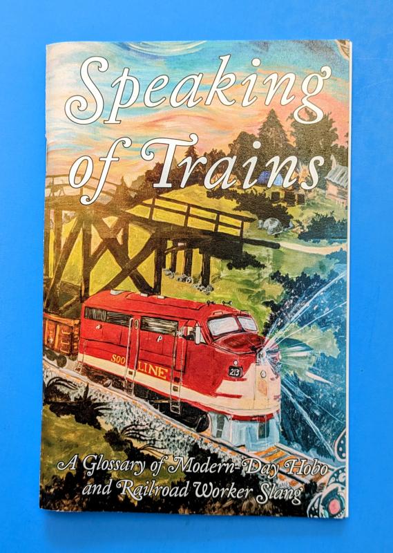 You want to ride freight trains like the characters in the Great Depression. So you find an experienced hobo to let you hold onto her coattails. You got someone to copy a crew change guide for you. But now there's all these unfamiliar words assaulting your ears. Never have you heard so much slang. What does it all mean? Well, The Black Butte Center for Railroad Culture's Speaking of Trains outlines over 600 of these pieces of railroad jargon in a comical way. What are freddies? What about wheaties? A sperry car? When I'm done with this space bag, I'm going spanging as long as I don't run into any bulls or special agents. We're hoping to leave the Jungle to catch the Juice Train in our fart sacks, but my partner is afraid of Catching the westbound. Talk like a railroad expert (unlike me right there!)